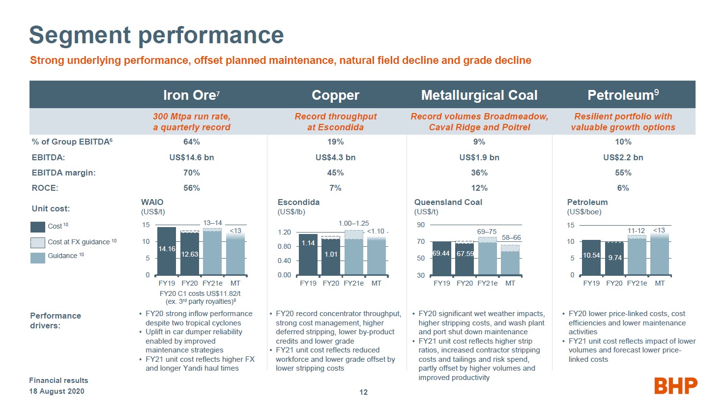 In the upcoming graphic down below, BHP Group provides an overview of its performance in fiscal 2020 by unit segment.