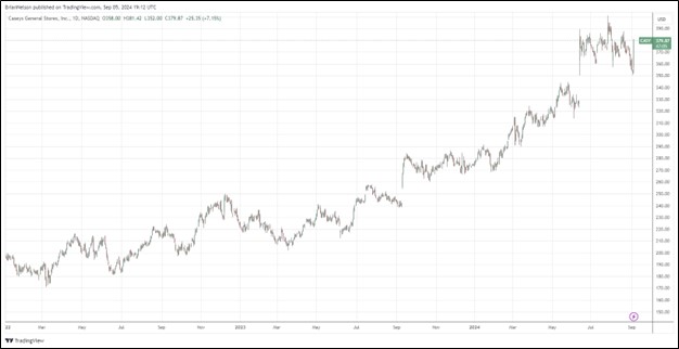 Image: Shares of Casey’s General Stores have done quite well since the beginning of 2022.