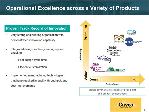 Image Shown: Commodore’s various brands cover a lot of different price points and market segments within the manufactured and modular housing industry. Image Source: Cavco Industries – Acquisition of Commodore July 2021 Presentation