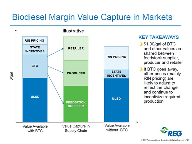 Image Shown: A visual overview of the economics of domestic biofuel production in the US. Image Source: Renewable Energy Group – October 2020 IR Presentation