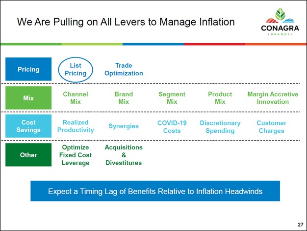 Image Shown: Conagra Brands is doing all it can to manage rising headwinds from inflationary pressures. Image Source: Conagra Brands – Fourth Quarter of Fiscal 2021 IR Earnings Presentation