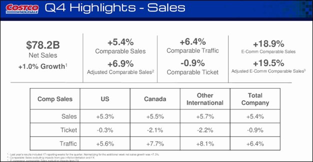 Costco Wholesale (COST) reported fiscal fourth-quarter results on September 26 where revenue came up a bit short relative to forecasts, while the company beat on the bottom line. For the 16-week fourth quarter, Costco reported a net sales increase of 1% compared to the 17-week fourth quarter of last fiscal year.
