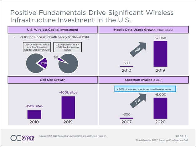 Image Shown: A snapshot of the market Crown Castle operates in and why its asset base is essential to supporting US networking operations. Image Source: Crown Castle – Third Quarter of 2020 IR Earnings Presentation