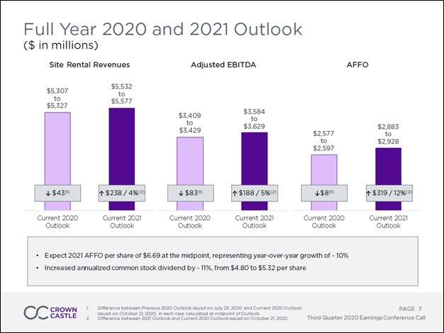 Image Shown: An overview of Crown Castle’s outlook for 2020 and 2021. Image Source: Crown Castle – Third Quarter of 2020 IR Earnings Presentation