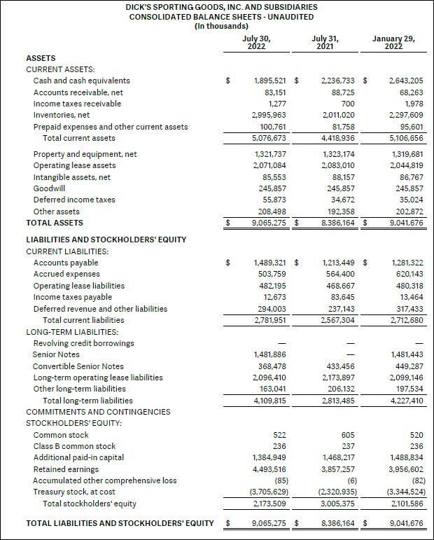 Image Shown: We are big fans of Dick’s Sporting Goods’ relatively healthy balance sheet, as the firm had a marginal net cash position on hand as of July 30, 2022. Image Source: Dick’s Sporting Goods – Second Quarter of Fiscal 2022 Earnings Press Release