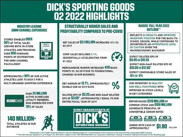Image Shown: An overview of Dick’s Sporting Goods’ operational and financial performance last fiscal quarter. Image Source: Dick’s Sporting Goods – IR Infographic covering the Second Quarter of Fiscal 2022