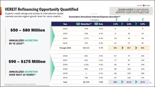 Image Shown: An overview of the refinancing upside Realty Income aims to generate in the wake of its merger with VEREIT, as Realty Income seeks to utilize its stronger financial position to its advantage. Image Source: Realty Income – November 2021 IR Presentation