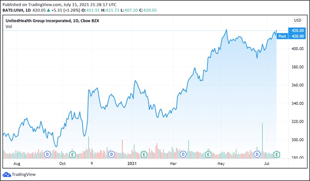 Image Shown: Shares of UnitedHealth Group Inc, an idea in the Dividend Growth Newsletter portfolio, are trading near their all-time highs as of this writing after the firm reported a stellar second quarter 2021 earnings report. In conjunction with its latest earnings report, UnitedHealth Group once again raised its full-year adjusted EPS guidance for 2021. We continue to be huge fans of the name.