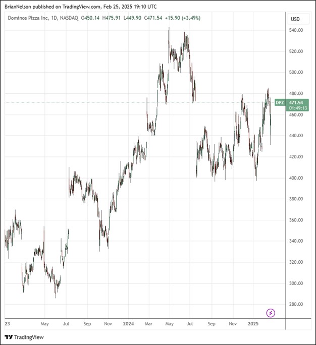 Image: Domino’s shares have advanced nicely since the beginning of 2023.