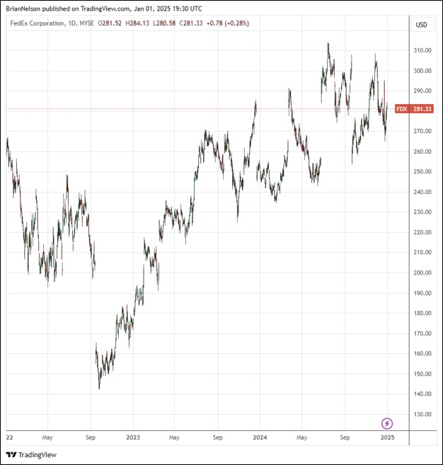 Image: FedEx’s shares have come roaring back since its bottom in the back half of 2022.