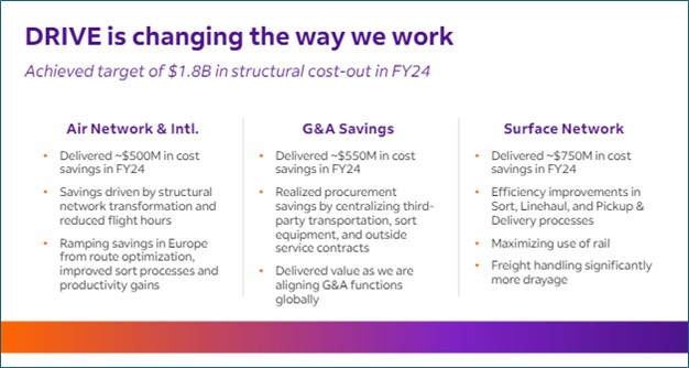 We made significant progress in fiscal 2024 and ended the year strong, delivering four consecutive quarters of expanding operating income and margin in a challenging revenue environment. These results are unprecedented in this current environment, reflecting our continued execution of our DRIVE initiatives and our resolve to transform FedEx while we deliver outstanding service to our customers. We expect this momentum to continue in fiscal 2025 as we advance our efforts to create the world’s most flexible, efficient, and intelligent network.