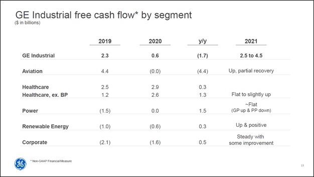 Image Shown: An overview of GE’s cash flow forecasts on a divisional basis for 2021. Image Source: General Electric – Fourth Quarter of 2020 IR Earnings Presentation