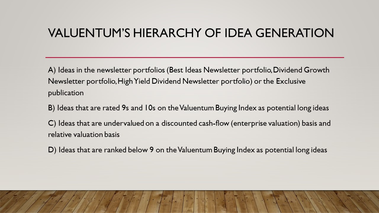 Look at this article from September 2019 – our pounding the table on “The Hierarchy of Idea Generation (September 2019)!” For new members, this is how we’ve explained and continue to explain our process. Frankly, it’s hard not to be excited about what’s going on at Valuentum!