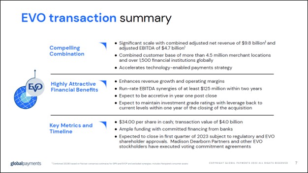 Image Shown: Global Payments Inc is in the process of acquiring EVO Payments Inc. Image Source: Global Payments Inc – Second Quarter of 2022 IR Earnings Presentation