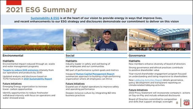 Image Shown: Phillips 66 is adapting to the changing investing landscape by placing a greater emphasis on ESG issues and sustainability practices, as best as it can considering the firm is a juggernaut in the fossil fuels industry. Image Source: Phillips 66 – November 2021 IR Presentation