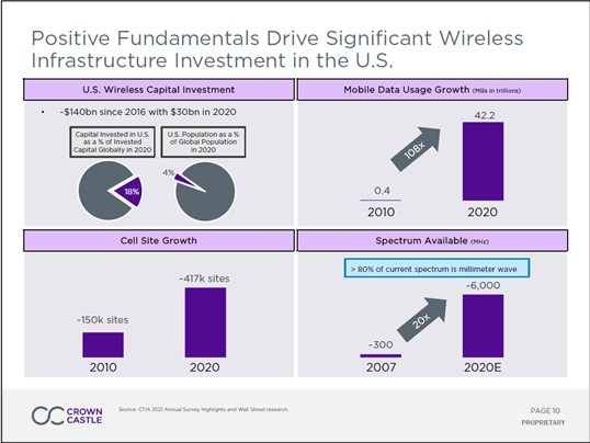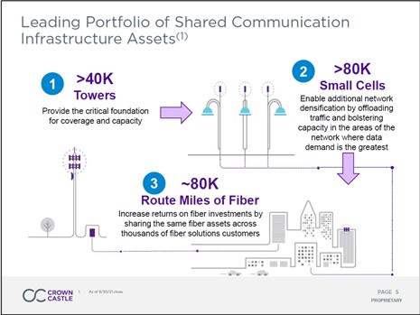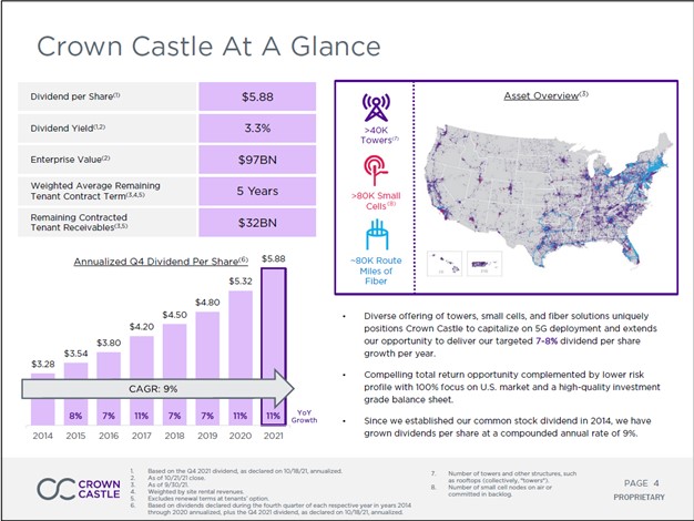 Image Shown: We include Crown Castle International Corp as an idea in our High Yield Dividend Newsletter portfolio. Image Source: Crown Castle International Corp – October 2021 IR Presentation