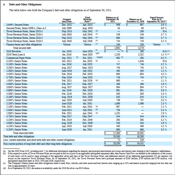 Image Shown: Crown Castle had a well-staggered debt maturity schedule at the end of September 2021. Image Source: Crown Castle – 10-Q SEC filing Categories Member Articles