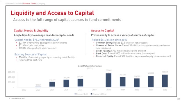 Image Shown: CubeSmart’s debt maturity schedule is well-staggered which should make future refinancing activities an easier task. In our view, CubeSmart should retain access to capital markets at attractive rates going forward. Image Source: CubeSmart – June 2022 IR Presentation