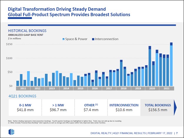 Image Shown: Digital Realty’s bookings continue to trend in the right direction. Image Source: Digital Realty – Fourth Quarter of 2021 IR Earnings Presentation