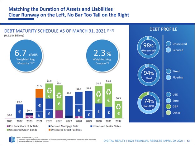 Image Shown: Digital Realty’s debt maturity schedule was well-staggered at the end of December 2021, which makes future refinancing activities a more manageable task. Image Source: Digital Realty – Fourth Quarter of 2021 IR Earnings Presentation