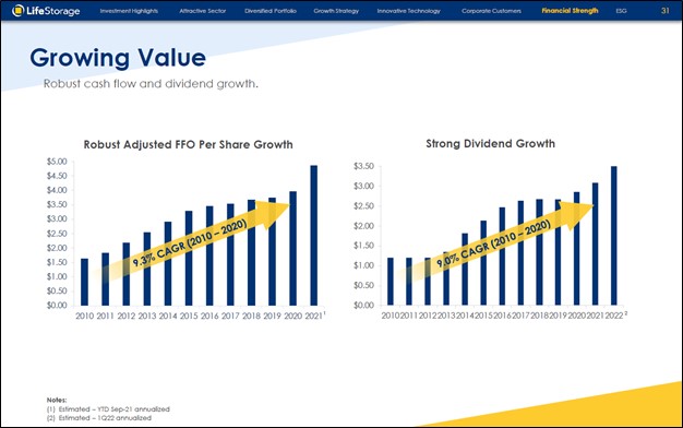 Image Shown: Life Storage Inc is committed to rewarding income seeking investors. Image Source: Life Storage Inc – January 2022 IR Presentation