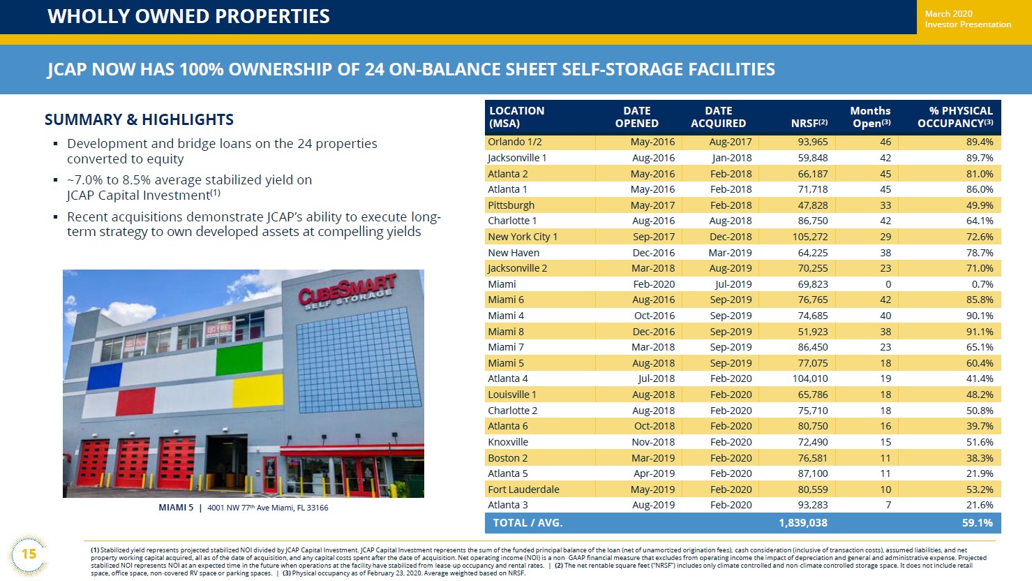 Image Shown: Jernigan Capital seeks to grow its wholly owned self-storage property asset base going forward. Image Source: Jernigan Capital – March 2020 IR Presentation
