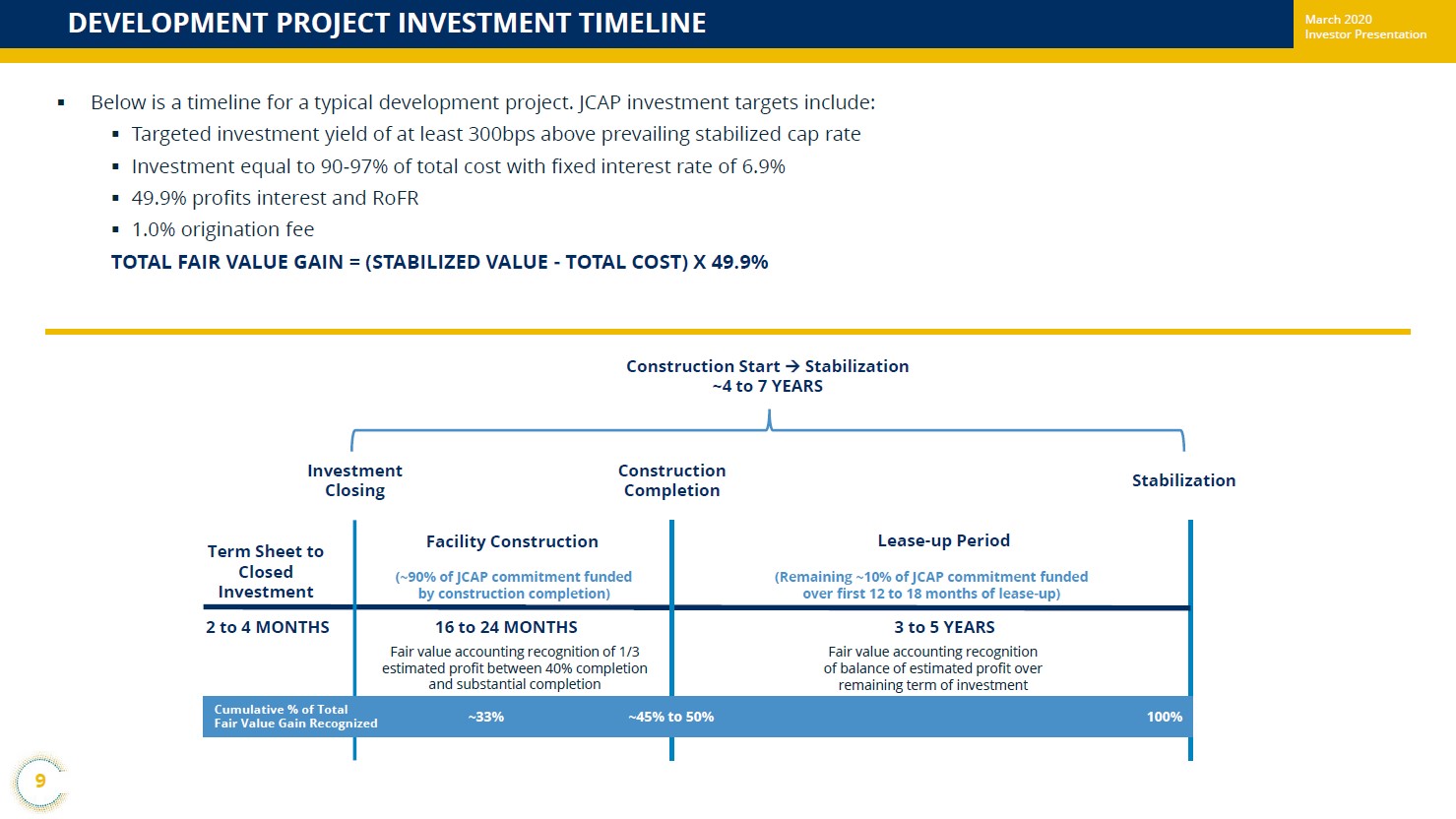 Image Shown: A look at Jernigan Capital’s development project investment business strategy and timetable. Image Source: Jernigan Capital – March 2020 IR Presentation