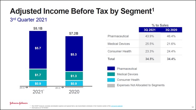 Image Shown: Johnson & Johnson reported strong performance across its three core business operating segments in the third quarter of fiscal 2021. Image Source: Johnson & Johnson – Third Quarter of Fiscal 2021 IR Earnings Presentation