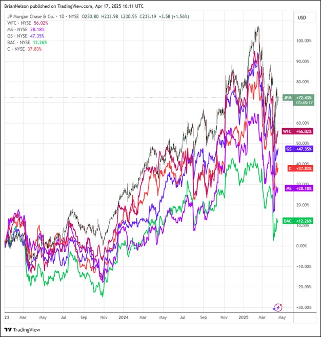 “In the CIB, Investment Banking fees rose 12% in the first quarter, although clients have become more cautious amid an increase in market volatility driven by geopolitical and trade-related tensions. Meanwhile, we saw increased activity in the Markets business. Markets revenue rose to $9.7 billion, an exceptionally strong quarter with record revenue in Equities. In CCB, the franchise continued to acquire new customers at a robust pace, opening 500,000 net new checking accounts and adding record first-time investors in wealth management. Finally, AWM had healthy AUM net inflows of $90 billion, and investment performance remained strong.”