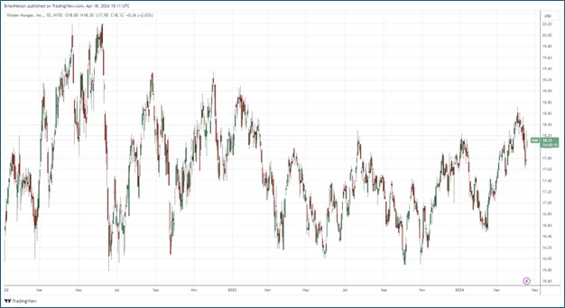 We liked the 2024 outlook for Kinder Morgan, one of the largest energy infrastructure companies in North America. The company benefits from fee-based cash flows backed by multi-year contracts, and the firm is doing a much better job managing traditional free cash flow and its leverage. In its latest quarterly release, management adjusted lower its long-term leverage target to the range of 3.5x to 4.5x for net-debt-to-Adjusted EBITDA (was 4.5x previously). Shares yield 6.3% on a forward estimated basis.