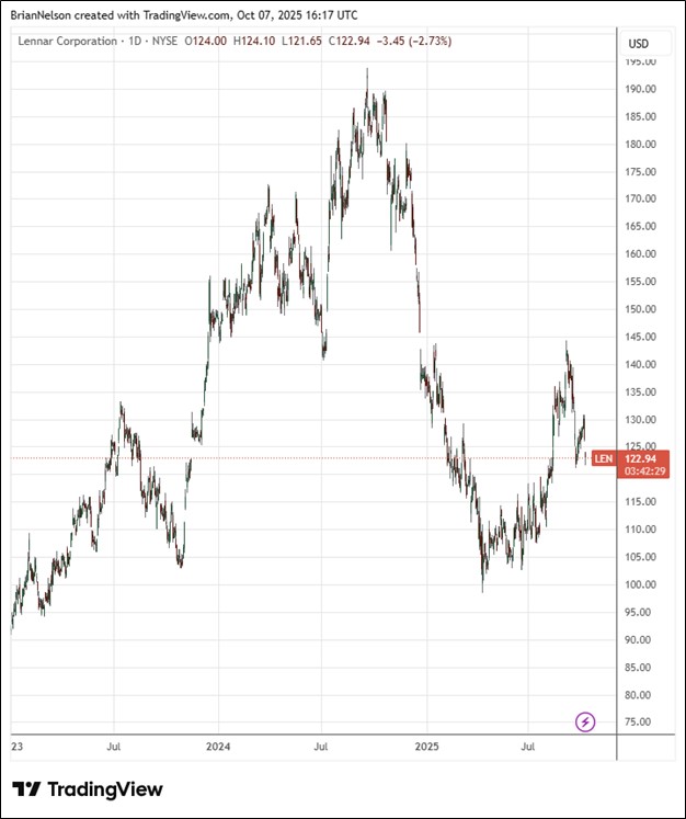 Lennar Corp. (LEN) recently reported third quarter fiscal 2025 results that missed expectations on both the top and bottom lines. Total revenues declined 6.4% as revenues from home sales decreased 9% primarily due to a decline in the average sales price of homes delivered. Deliveries of 21,584 homes were consistent with the prior year, and the company ended the quarter with a backlog of 16,953 homes with a dollar value of $6.6 billion. Management had the following to say about the results: