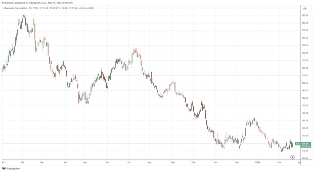 Image: Albemarle’s shares have faced significant pressure as a result of depressed lithium prices.