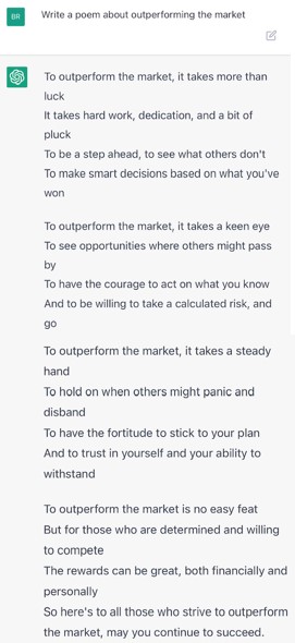 Image: ChatGPT is taking the Internet by storm. A poem generated by the AI-driven chatbot in a matter of seconds about outperforming the stock market. Image Source: ChatGPT