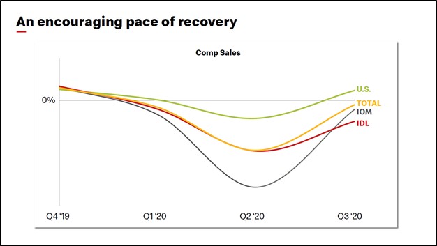Image Shown: McDonald’s Corporation has seen its business recover at a faster pace from the coronavirus (‘COVID-19’) pandemic in the US than in other geographical markets it operates in. Image Source: McDonald’s Corporation – November 2020 IR Presentation