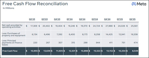 Image: Meta’s free cash flow remains robust despite higher capital spending.