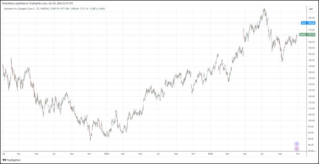 Alphabet (GOOG) (GOOGL) reported fantastic third quarter results October 29 that showed a beat on both the top- and bottom lines. Consolidated revenue increased 15% in the quarter (16% on a constant-currency basis), to $88.3 billion, versus consensus of $86.2 billion, with Google Services, total, revenue increasing 13% and Google Cloud revenue increasing 35%.