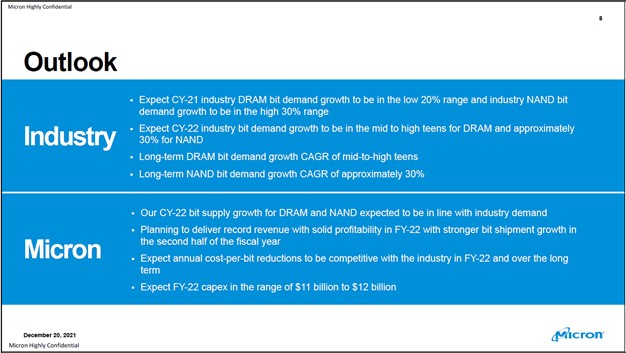 Image Shown: An overview of Micron Technology’s outlook for the industry and its own operations for 2022 and beyond. Image Source: Micron Technology – First Quarter of Fiscal 2022 IR Earnings Presentation