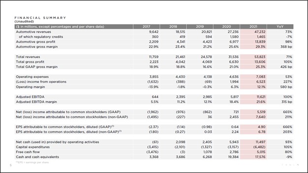 Image Shown: Tesla aggressively boosted its EV production and delivery rates in 2021 over 2020 levels as the company continued to successfully scale up its manufacturing capabilities. Strong operational performance of late, all things considered, has played an outsized role in improving Tesla’s financial performance. Image Source: Tesla – Fourth Quarter of 2021 IR Shareholder Deck