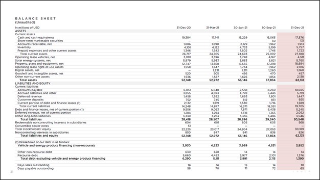 Image Shown: Tesla had a pristine balance sheet at the end of December 2021. Image Source: Tesla – Fourth Quarter of 2021 IR Shareholder Deck
