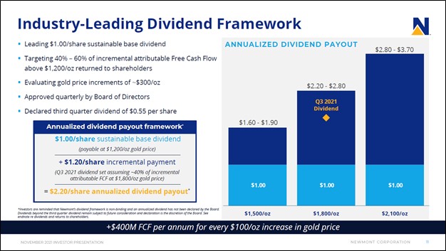 Image Shown: Though Newmont Corporation’s third quarter earnings disappointed, the gold miner remains very shareholder friendly. Image Source: Newmont Corporation – Third Quarter of 2021 IR Earnings Presentation