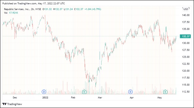 Image Shown: Shares of Republic Services Inc have held up quite well over the past several months while equity markets swooned lower.