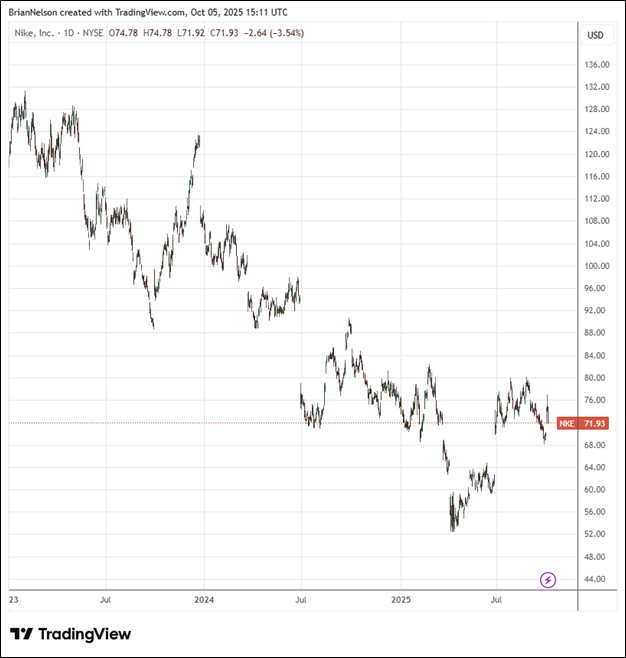 Nike (NKE) recently reported decent first quarter fiscal 2026 results with both revenue and GAAP earnings per share beating the consensus forecast. First quarter revenues of $11.7 billion were up 1% on a reported basis, but down 1% on a currency neutral basis. Nike Direct revenues fell 5% on a currency neutral basis, while wholesale revenues advanced 5% on a currency neutral basis. Revenues for the Nike brand were flat on a currency neutral basis in the quarter, while sales for Converse dropped 28% on a currency neutral basis. Its gross margin fell 320 basis points, to 42.2%, due to pricing pressure, higher discounts and channel mix, as well as higher tariffs, while diluted earnings per share came in at $0.49, a decline of 30%.