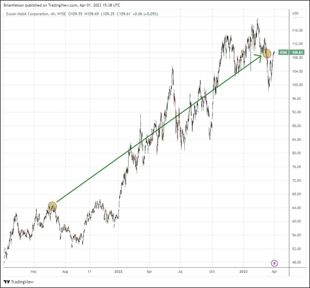 However, much has changed since then. Shares of Exxon Mobil and Chevron have soared, and their dividend yields, while still very nice, now pale in comparison to those on short-term risk-free government bonds. Further, with a hot war raging in Ukraine, geopolitical tensions rising in China, an ongoing regional bank crisis occurring in the U.S., inflation continuing at an elevated pace, sovereign debt levels remaining elevated, and a wealth effect from increased interest rates yet to be felt by the consumer from a weakening housing market, taking “some profits” on a couple huge “winners” of last year seems like a prudent move for now, in our view.