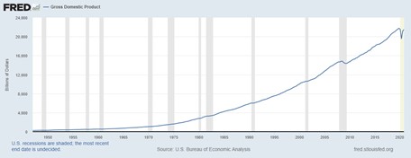The second reason why we like the long-term U.S. GDP chart is that it shows that total U.S. GDP during the worst of the COVID-19 economic meltdown was still roughly equivalent to that of mid-2017.