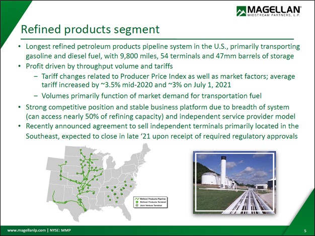 Image Shown: Magellan Midstream owns and operates an expansive network of refined petroleum product pipelines in the US, keeping in mind it is in the process of divesting a large portion of its terminals business. Image Source: Magellan Midstream – September 2021 IR Presentation