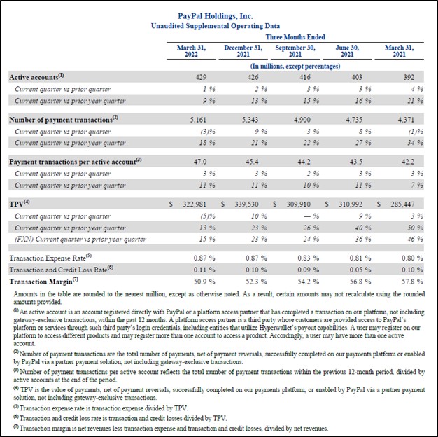 Image Shown: Demand for PayPal’s offerings remained robust in the first quarter of 2022, though its margins are contending with various pressures. Image Source: PayPal – First Quarter of 2022 Earnings Press Release