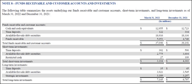 Image Shown: PayPal had a nice net cash position on hand at the end of March 2022 when taking its cash-like holdings included within its long-term investments balance into account. Image Source: PayPal – 10-Q SEC filing covering the First Quarter of 2022