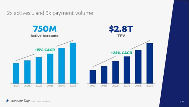 Image Shown: PayPal’s internal outlook is underpinned by an expanding active user base and rapid TPV growth. Image Source: PayPal – 2021 Investor Day Presentation