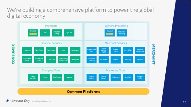 Image Shown: PayPal’s goal is to keep building up its comprehensive slate of financial services that meet the needs of both its consumer and merchant user bases. Image Source: PayPal – 2021 Investor Day Presentation