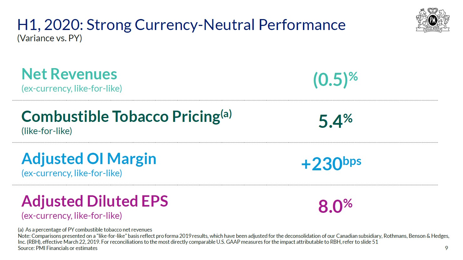 Image Shown: Excluding foreign currency headwinds, Philip Morris International Inc’s financials held up relatively well during the first half of 2020, all things considered with an eye towards the pandemic. Image Source: Philip Morris International Inc – Second Quarter of 2020 IR Earnings Presentation